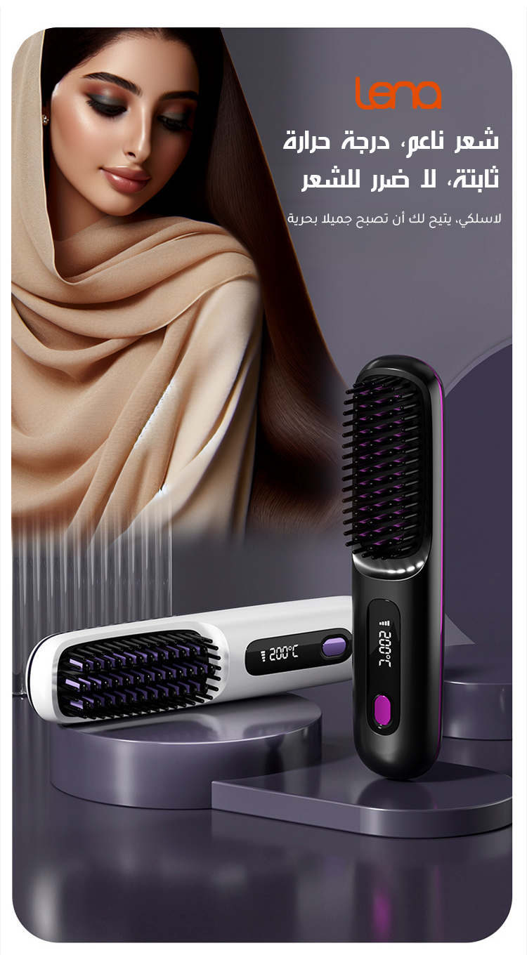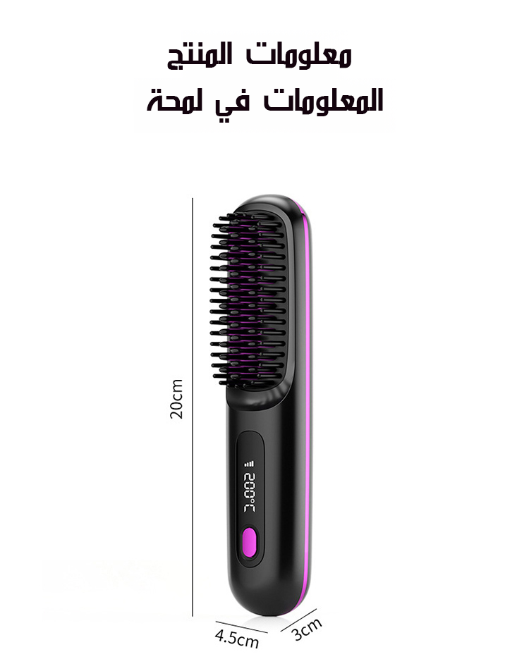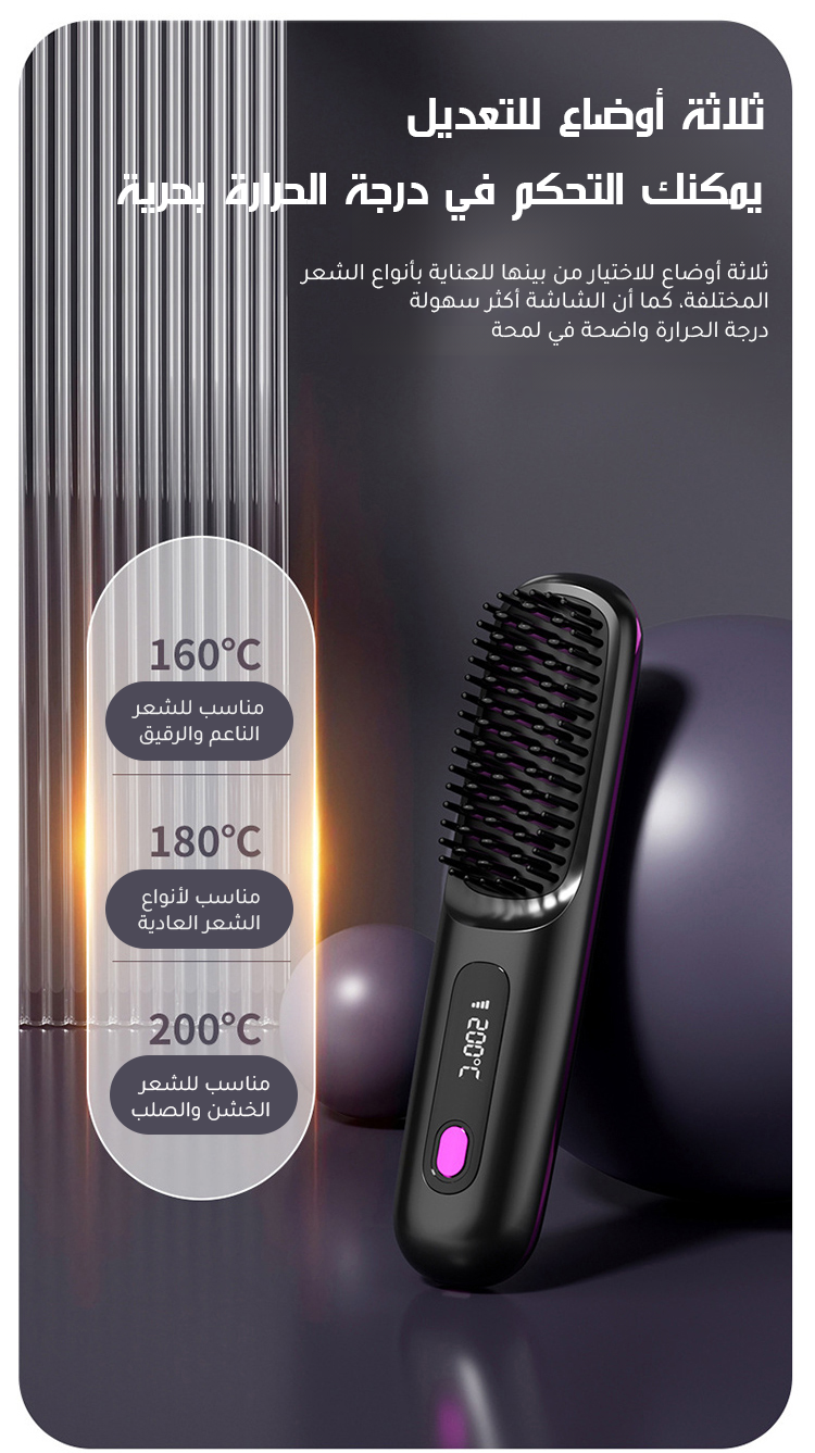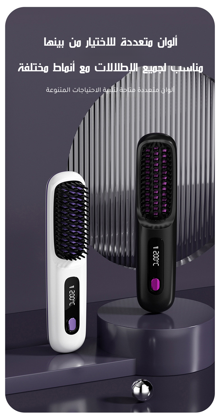 مشط تمليس الشعر بتسخين السيراميك اللاسلكي مع شاشة LCD