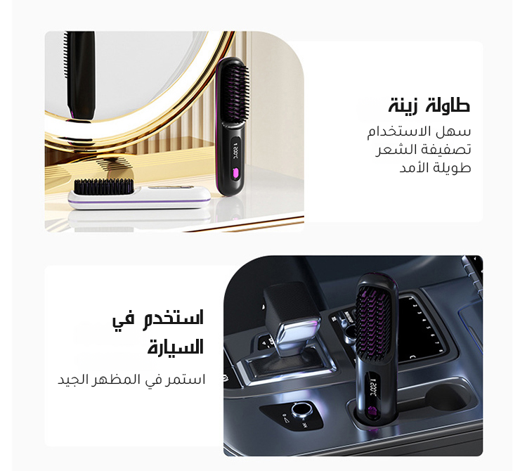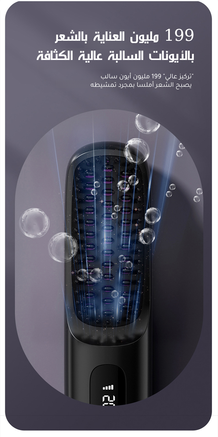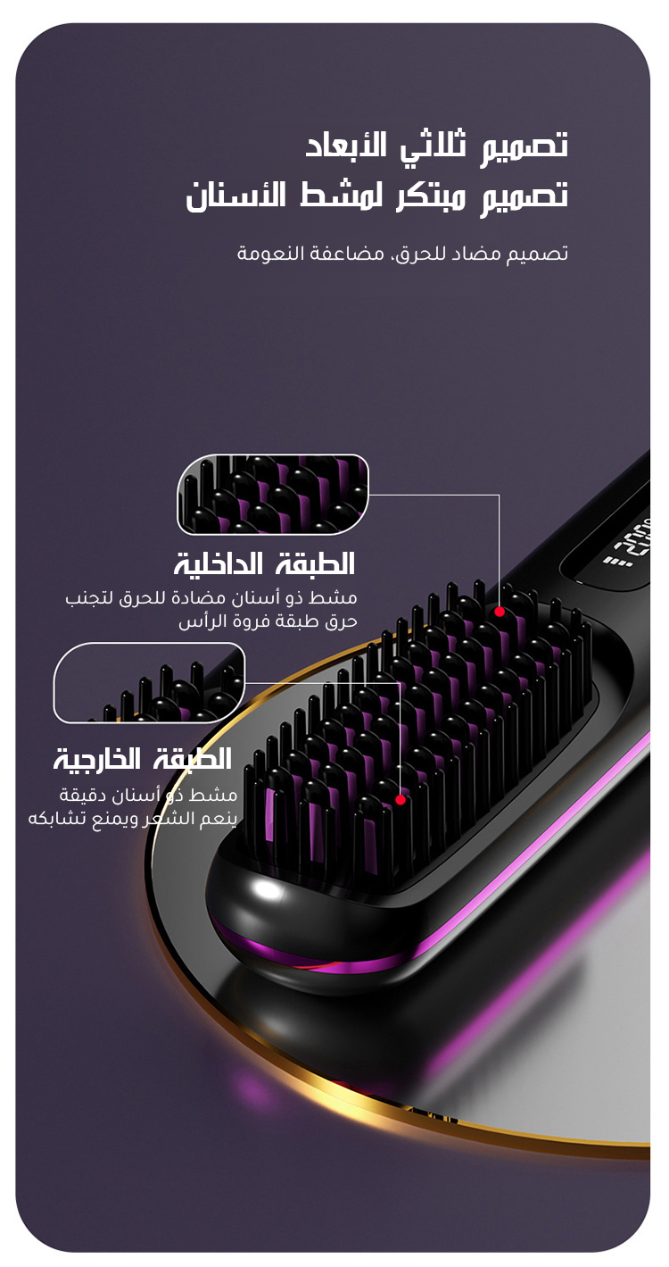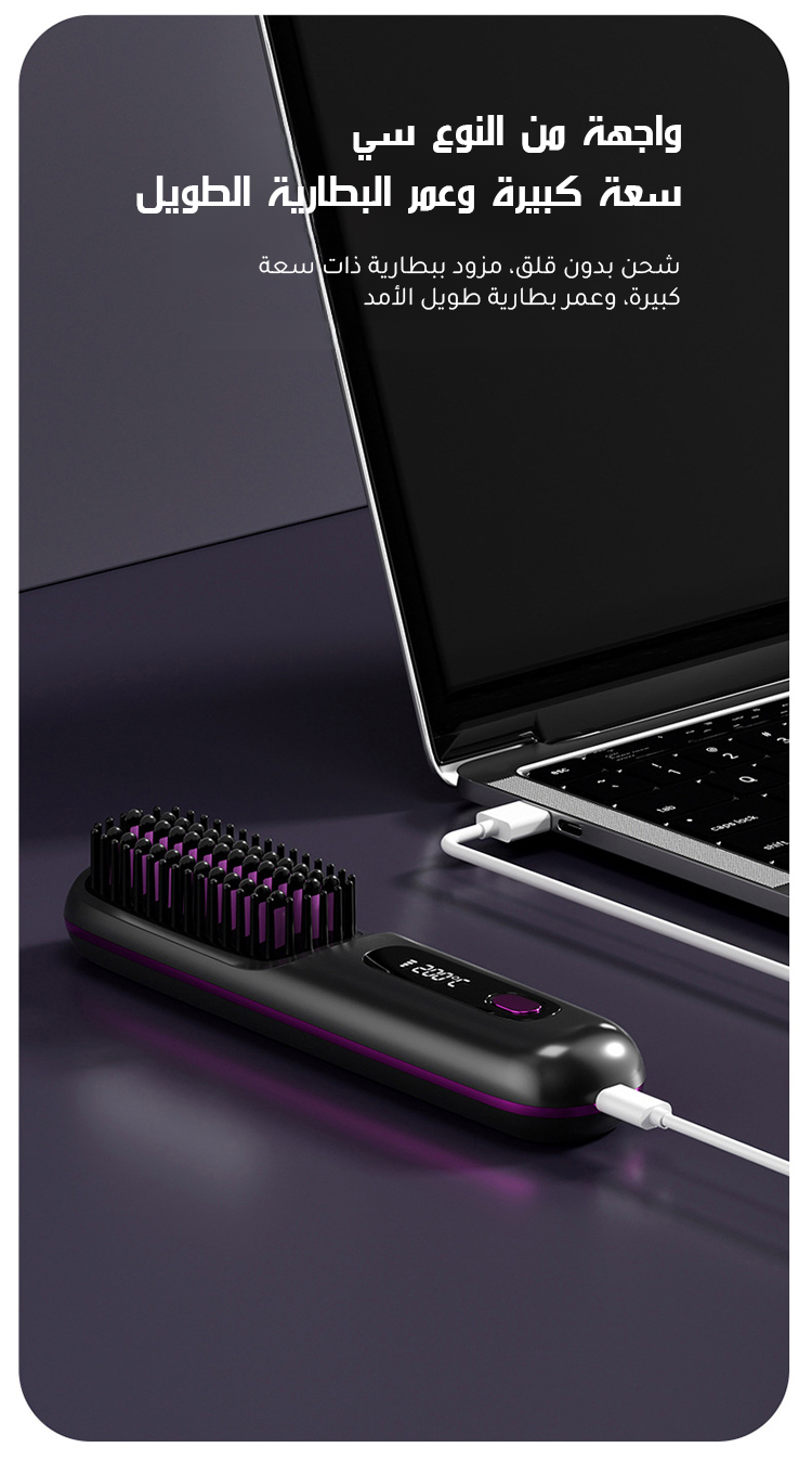 مشط تمليس الشعر بتسخين السيراميك اللاسلكي مع شاشة LCD
