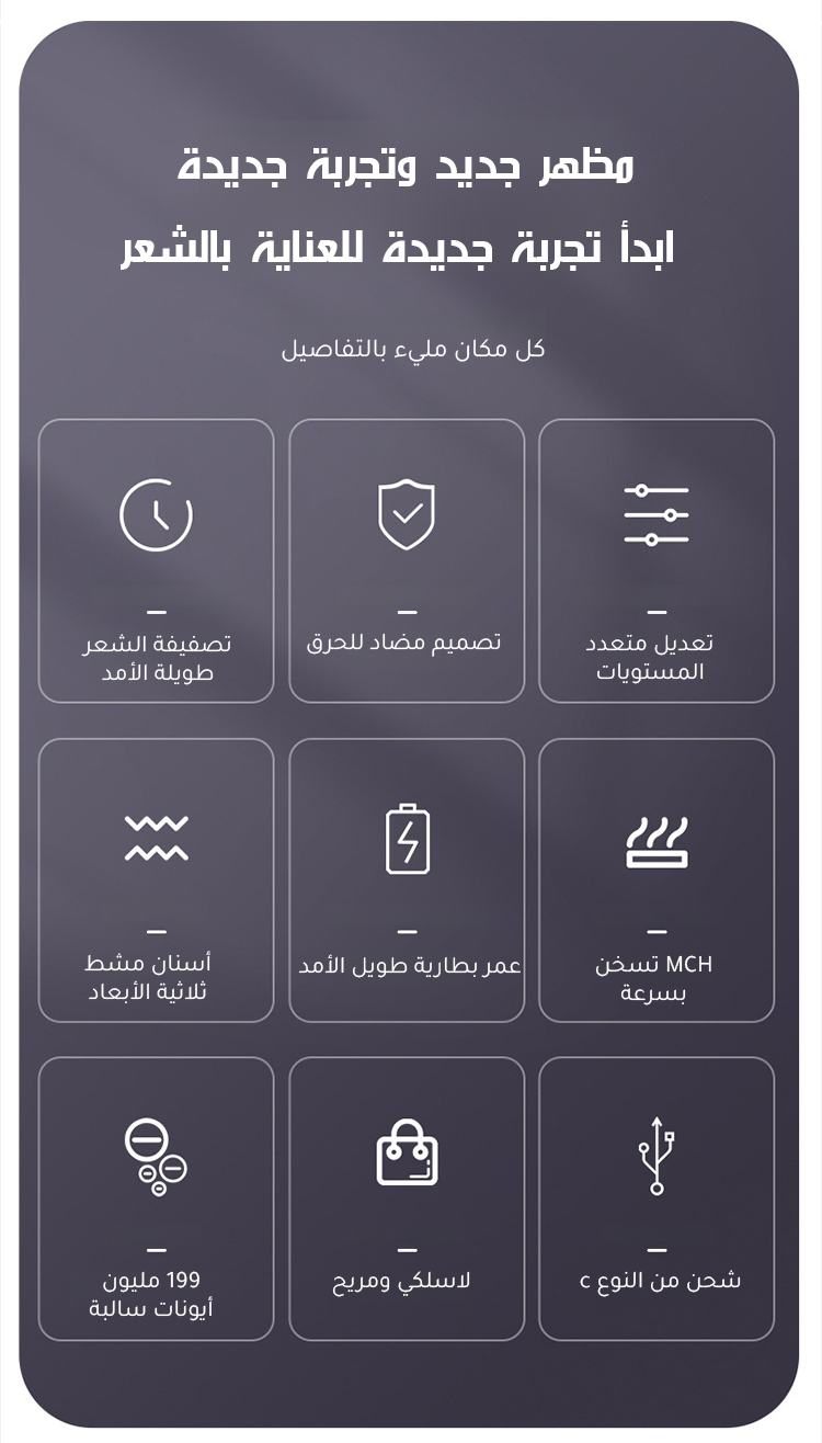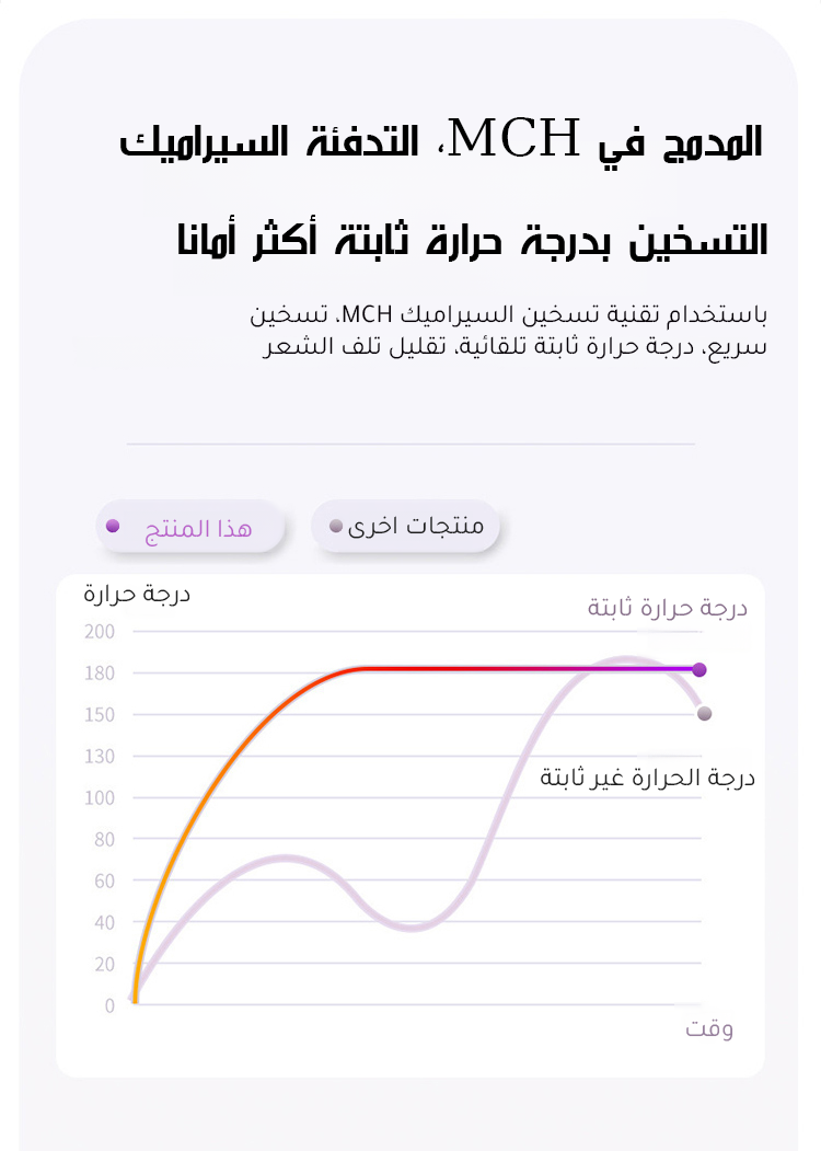 المواد الخزفية تضمن توزيع الحرارة بشكل متساوٍ، مما يقلل من تلف الشعر ويحافظ على صحته ولمعانه.
