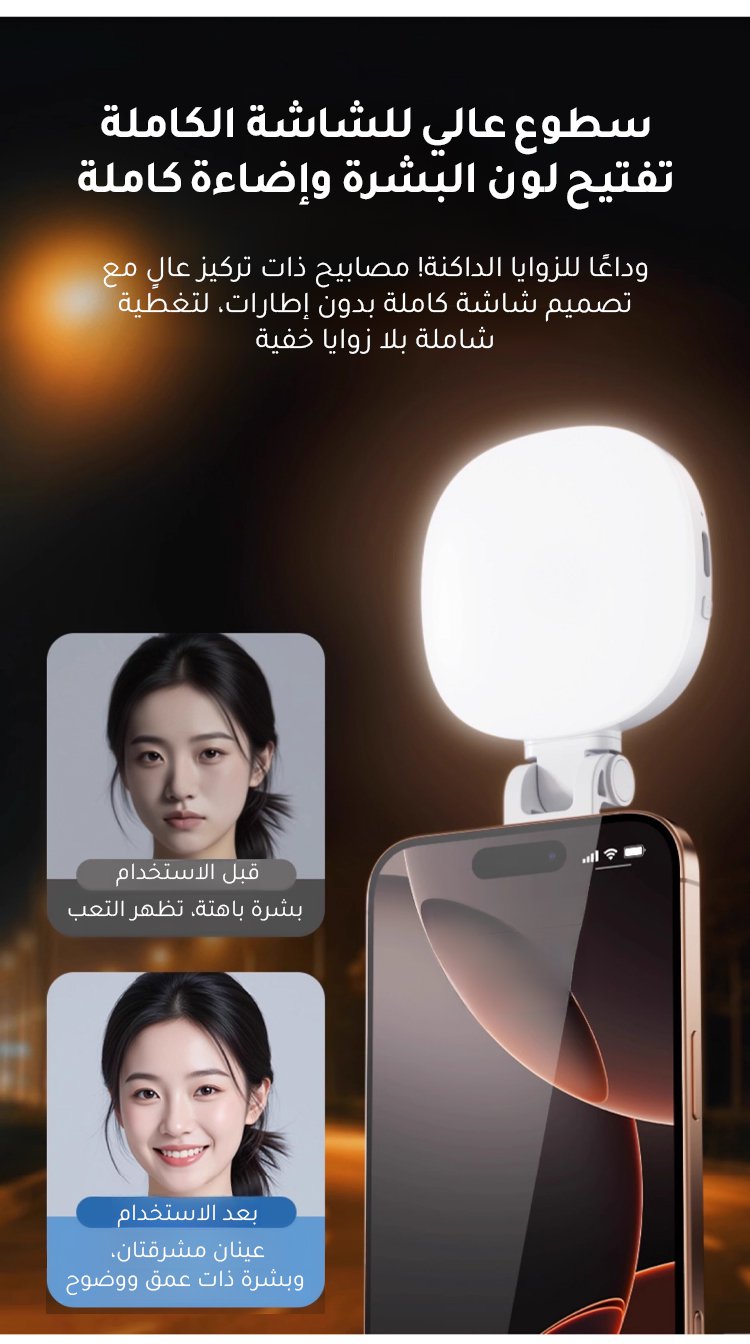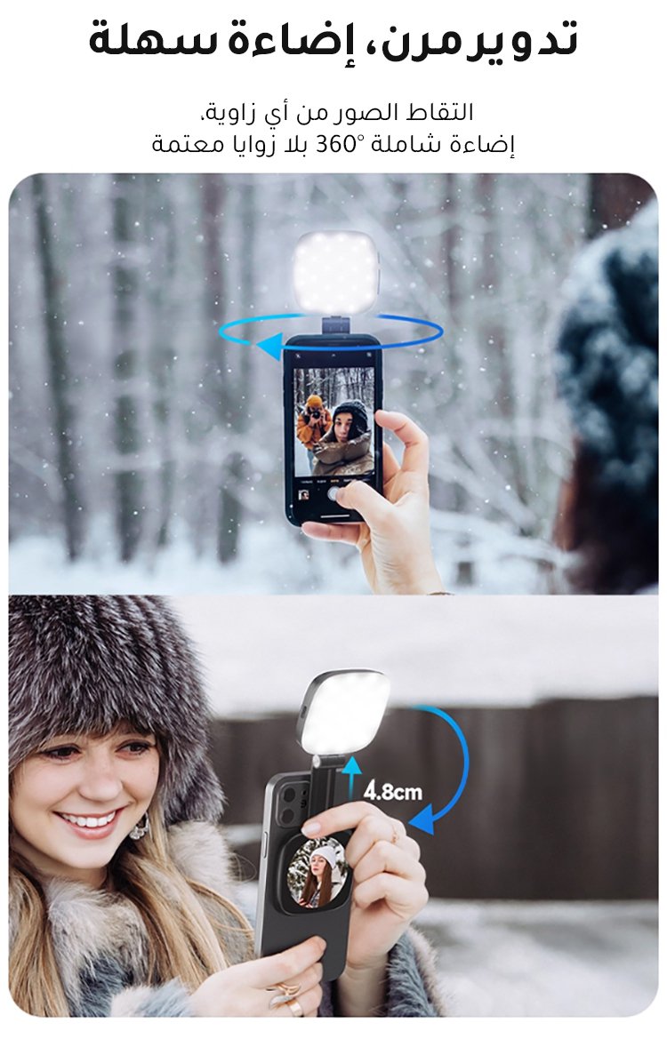 إنه بالتأكيد سلاحك السري لتحسين جودة التصوير! تصميم مغناطيسي، يلتصق بسهولة بهاتفك، ويمكنك الإضاءة في أي وقت وأي مكان. يمكنك ضبط مستويات مختلفة من السطوع، سواء في مطعم خافت أو مشهد ليلي، مما يمنحك تأثير تجميل مشوش تلقائيًا، والتقاط صور عالية الجودة وبدء بث رائع. لا تتردد، اشتره الآن!