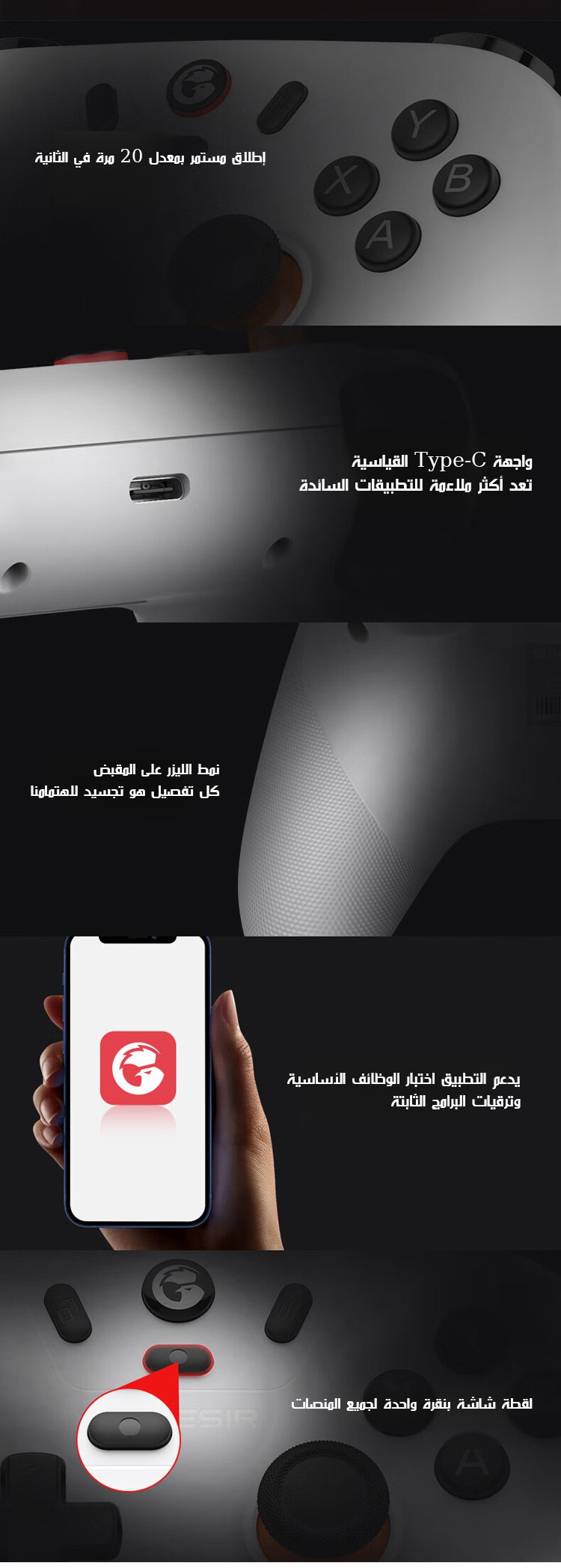 (استجابة فورية بلا تأخير) وحدة تحكم ألعاب بتقنية بلوتوث لاسلكية