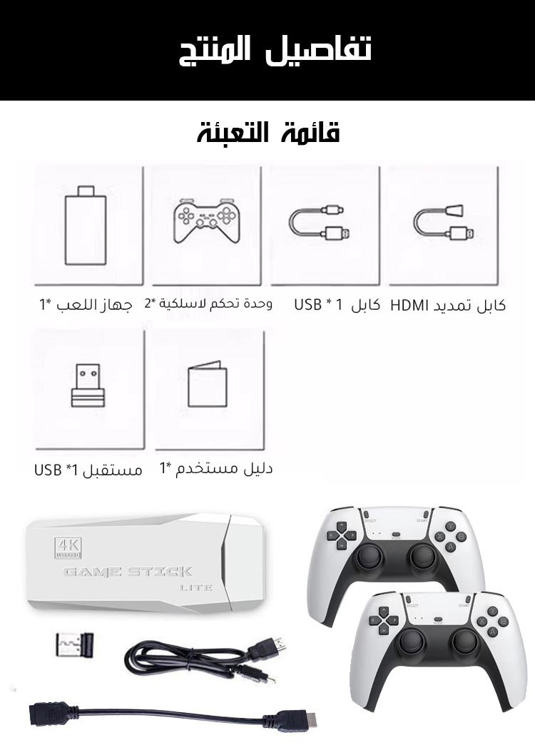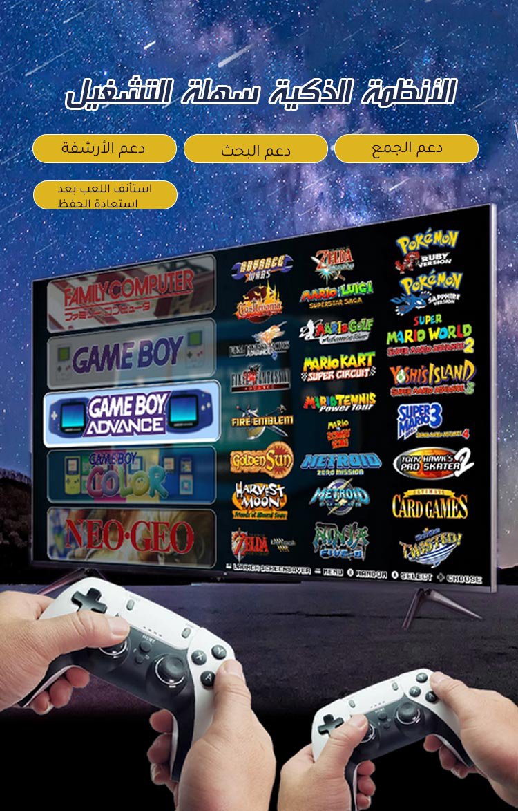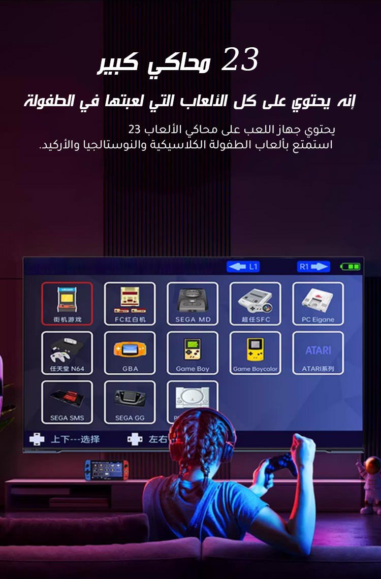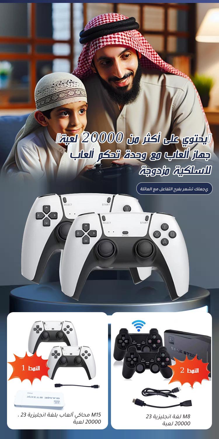 جهاز لعب مع وحدتي تحكم لاسلكيتين【مزود بأكثر من 20000 لعبة】