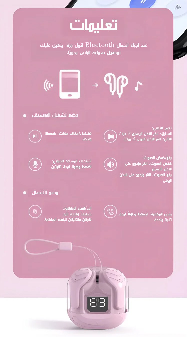 سماعات أذن بلوتوث لاسلكية بصوت ستيريو مزدوج