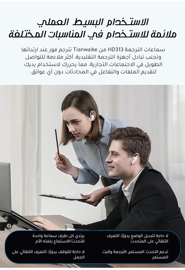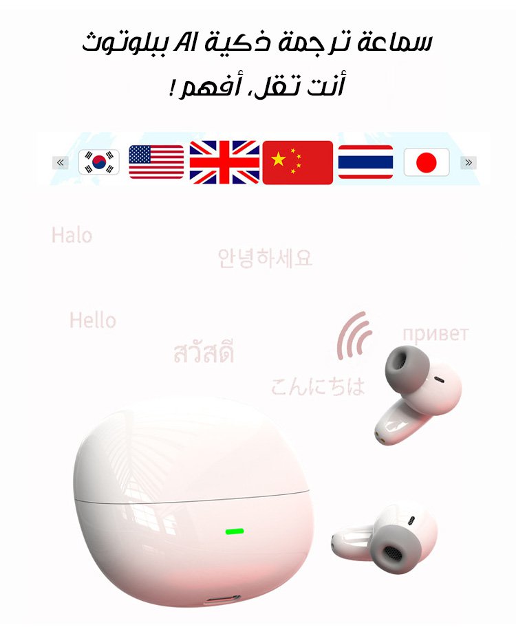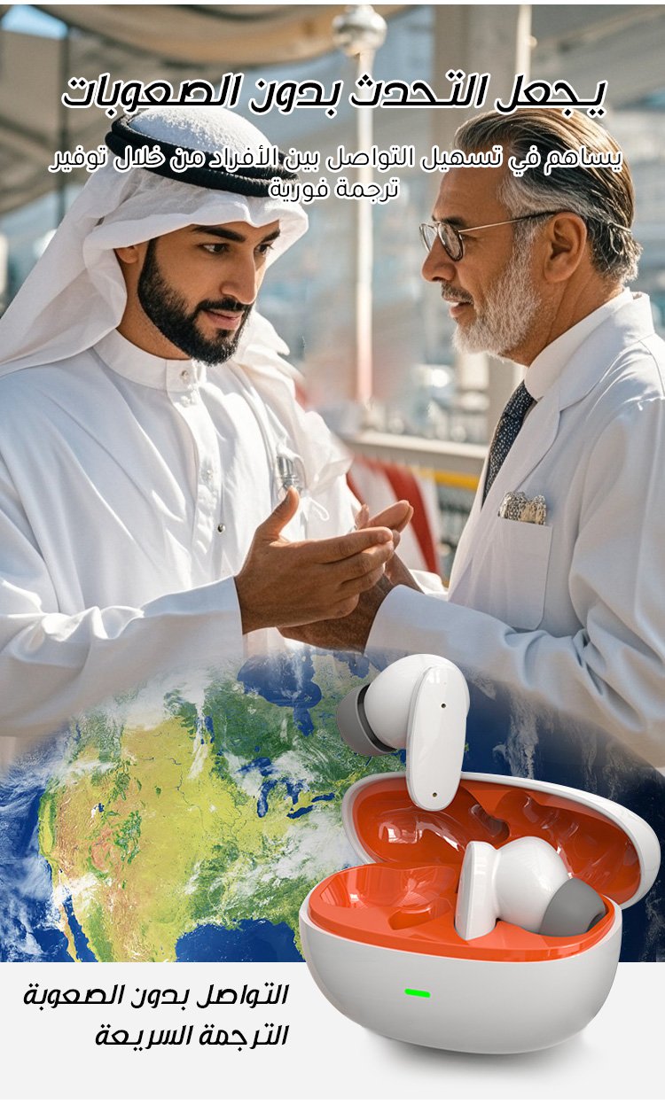 سماعات تترجم 144 لغة، مساعد مثالي للسفر والعمل في الخارج,بدون تأخير، ترجمة AI، دقيقة وموثوقة
