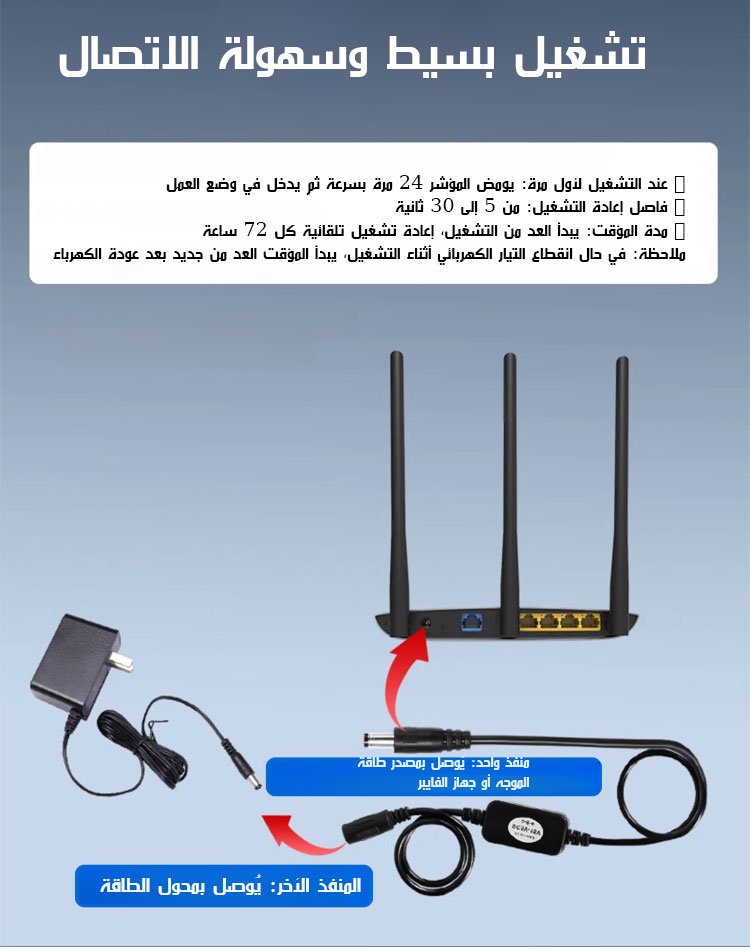 كابل إعادة تشغيل الموجه تلقائيًا كل 72 ساعة عبر قطع التيار الكهربائي