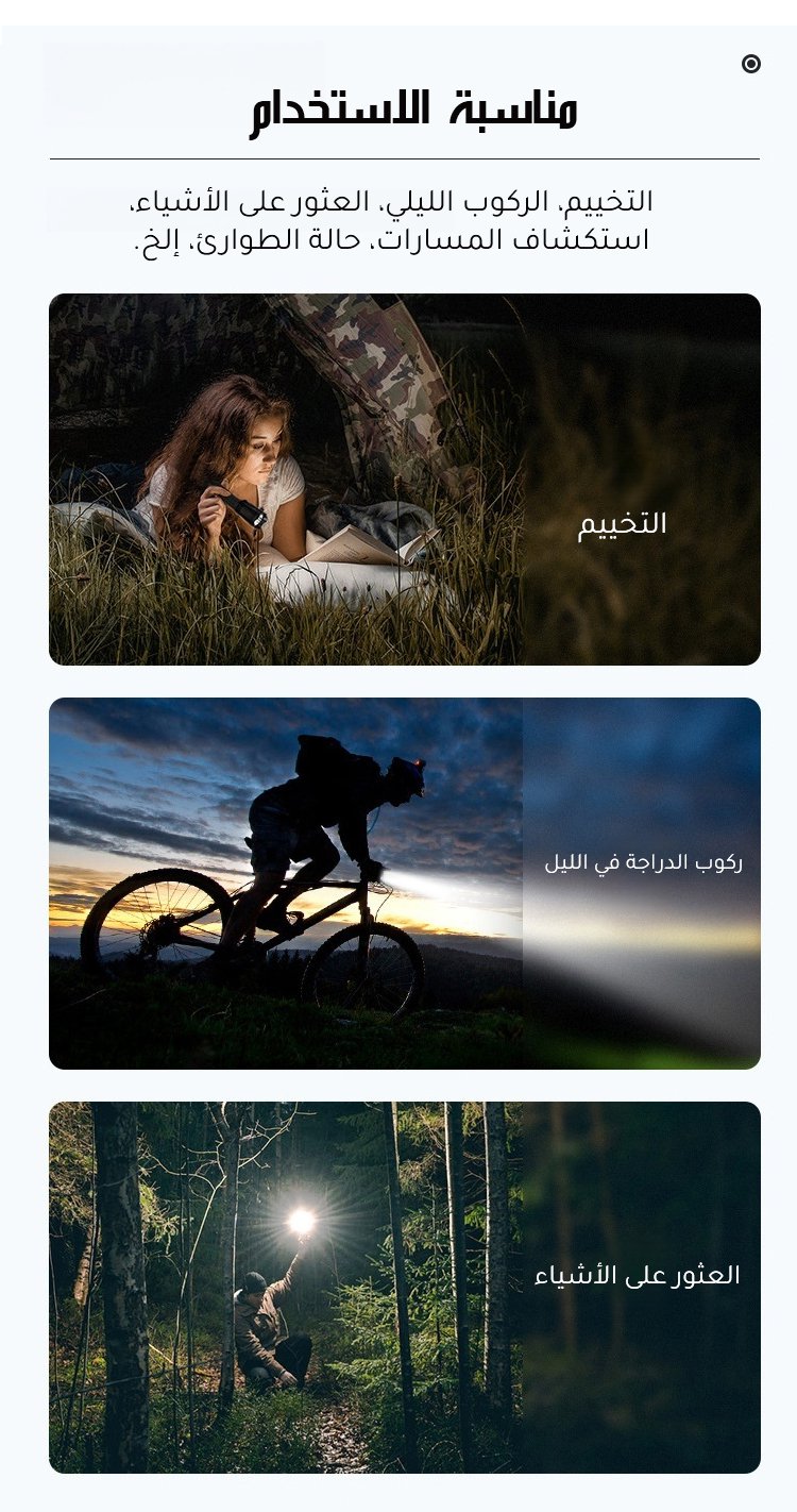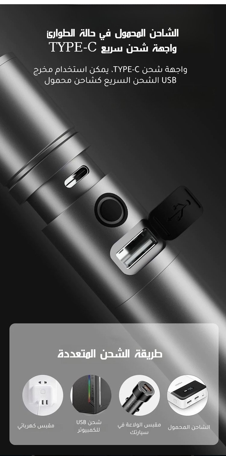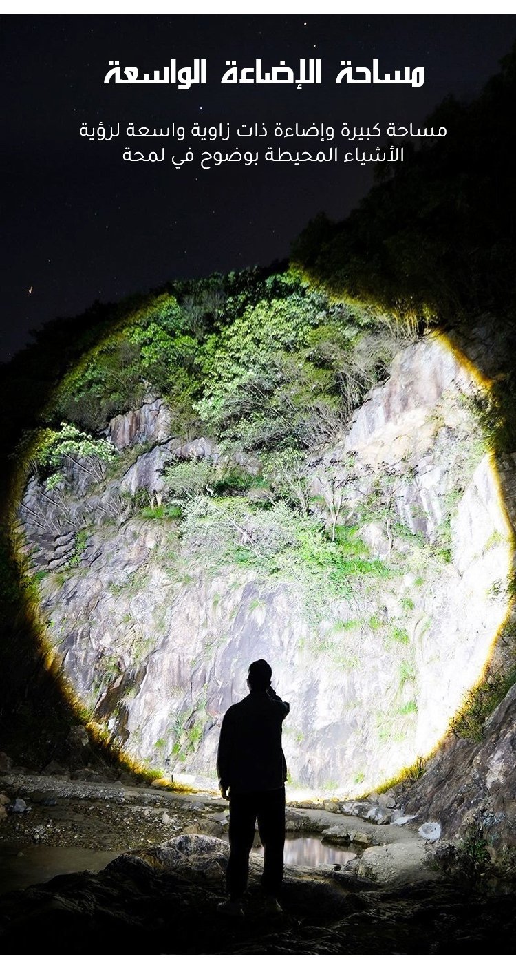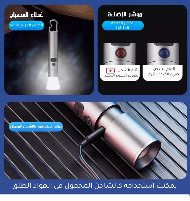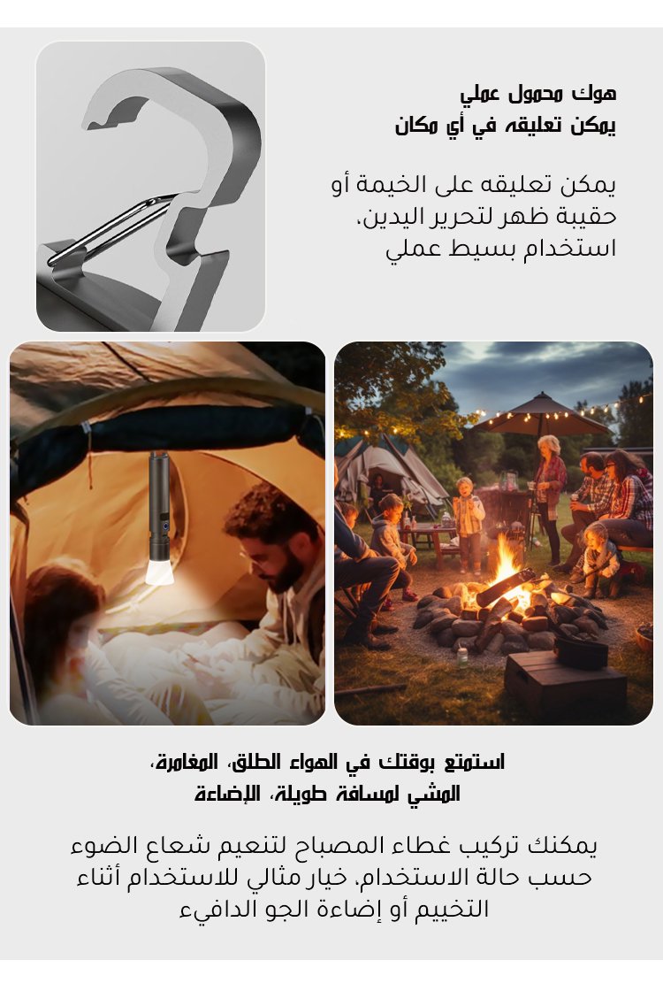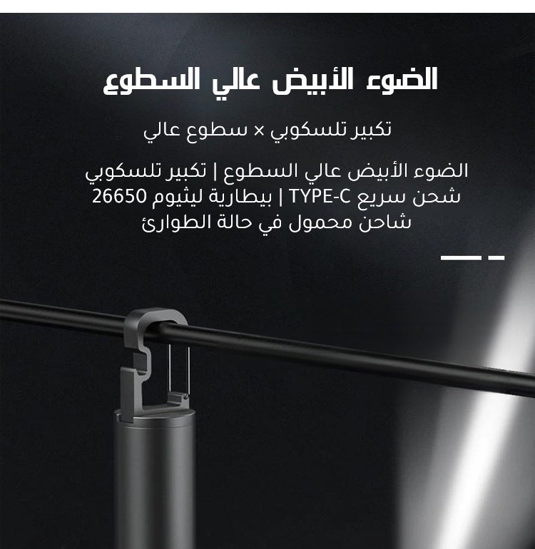 كشاف يدوي محمول مع ضوء أبيض عالي السطوع وتكبير تلسكوبي وهوك التعليق